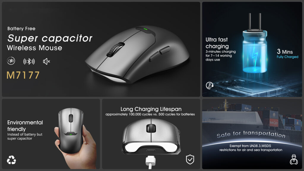 Super capacitor wireless mouse, ultra fast charging, environmentally friendly , long charging lifespan
